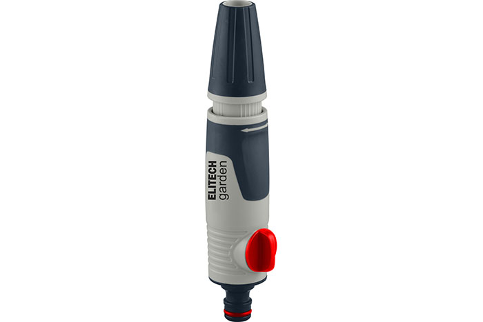 - Распылитель для шланга с двойной регулировкой ELITECH Garden HF 007 используют для ухода за растительностью на загородном участке, в саду, сквере, парке или на придомовой территории. Распыление регулируется от тумана до мощной струи (без остановки передним регулировочным наконечником). Мягкая резиновая ручка и наконечник. Ручка управления потоком воды с шаровым краном (вкл /выкл и регулирование расхода).