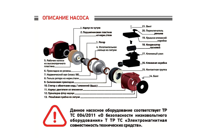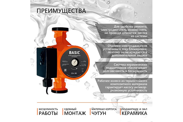 Насос циркуляционный Basic 25/4-180 (гайки, кабель)