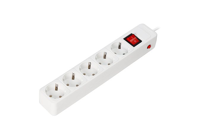Сетевой фильтр 16А, 3500 Вт, 5 гн, 1,8м. без з/ш, с з/к, ПВС 3x1.0 мм², белый (SBSP-5-18-W)(278)