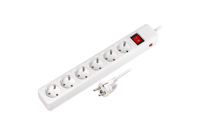 Сетевой фильтр 16А, 3500 Вт, 6 гн, 5м. без з/ш, с з/к, ПВС 3x1.0 мм², белый (SBSP-6-50-W)(716)