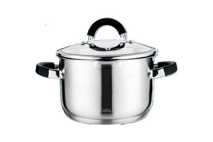 Кастрюля нержавеющая сталь LARA 24x14,5см 6.5л, индукционное дно, все типы плит, силикон (LR02-9003)