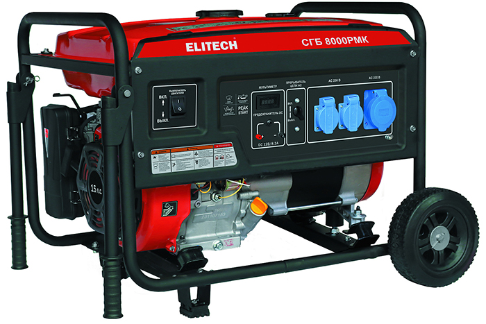 Бензогенератор ELITECH СГБ 8000РМК (6,5 кВт, бак-25л, 3 розетки, 83,5кг, ручн.старт, мультим, )