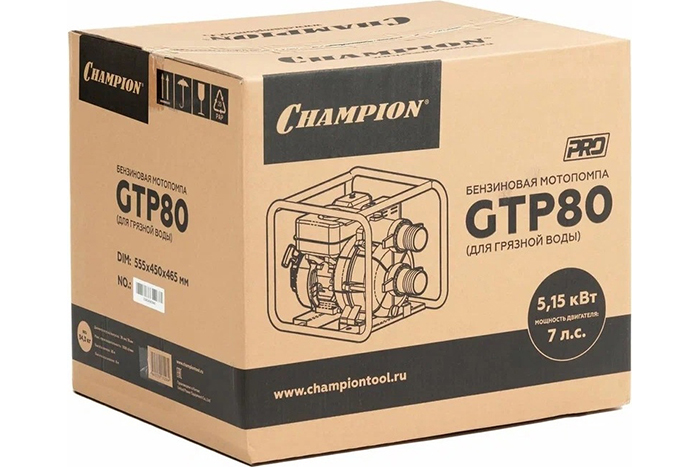 Мотопомпа CHAMPION GTP80 грязная вода (1300л/мин,7,0лс, 34,3кг, 3,0")