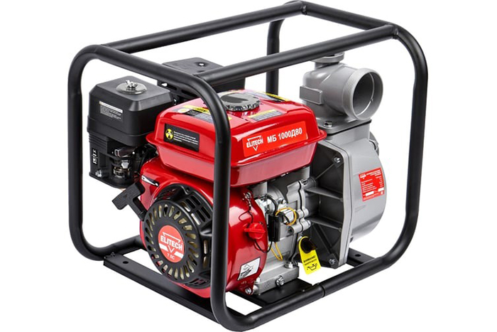 Мотопомпа ELITECH МБ 1000 Д80 (7л.с, 1000л/мин, выс 27м, гл 8м, 80мм, чист/вода, 30кг (E0105.002.00)