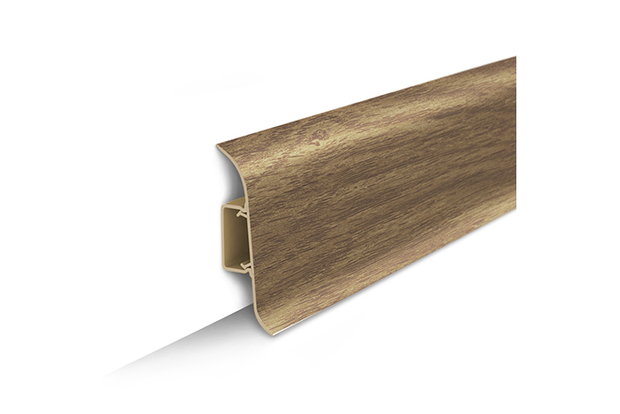 Плинтус имеет проверенную временем S-образную форму с центральным кабель-каналом для монтажа и проводов.