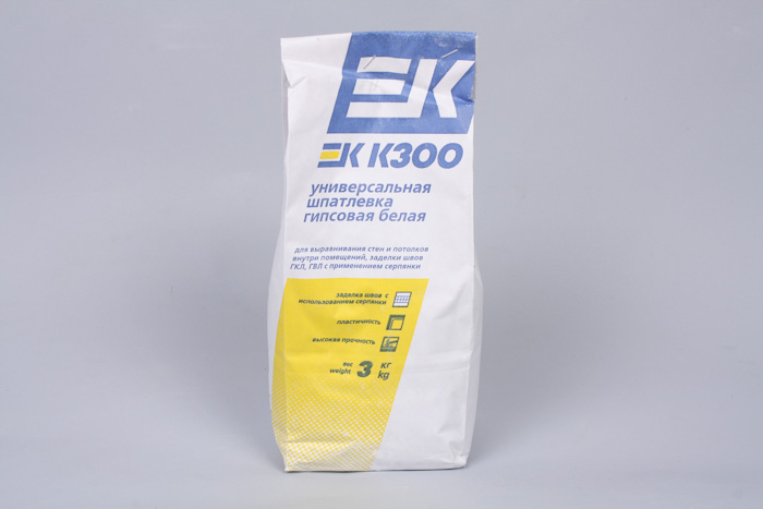 Гипсовая шпатлевка EK K300 предназначена для выравнивания вертикальных и горизонтальных бетонных, пенобетонных, цементных, цементно-известковых, гипсовых и гипсокартонных поверхностей в сухих помещениях под окраску и оклейку обоими. Может применяться для заделки швов между гипсокартонными и гипсоволокнистыми листами с использованием армирующей ленты (серпянки) и в качестве ремонтного состава для быстрого устранения небольших сколов, трещин глубиной до 15 мм.