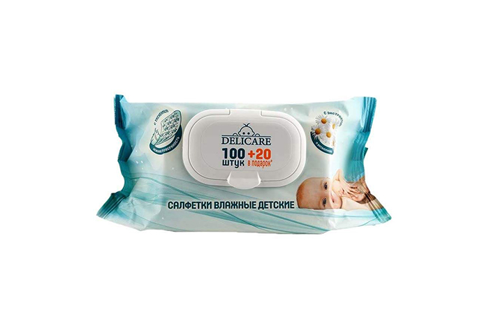 Салфетки влажные DELICARE детские ромашка и витамин Е 120шт (166) 102