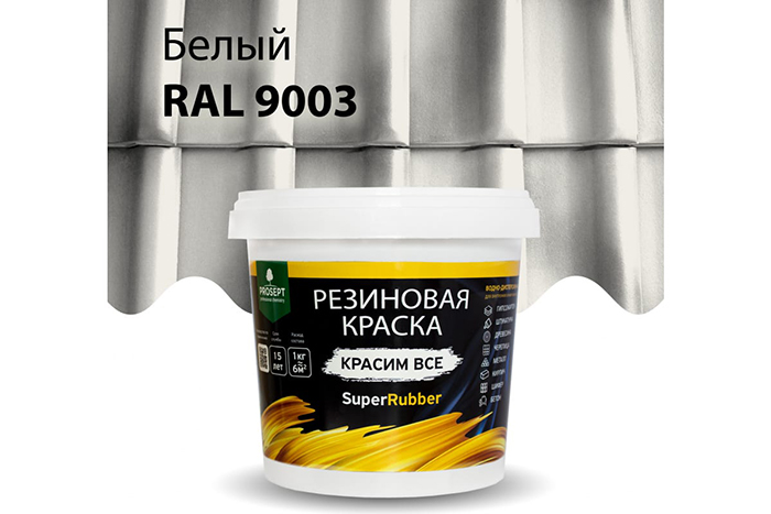 - Краска SuperRubber -для окрашивания крыш, шифера, черепицы, водосточных систем, оцинкованного железа, фасадов зданий, стен, потолков, штукатурки, кирпича, бетона, гипсокартона, фанеры, OSB, ДСП, ДВП, ЦСП, алюминия, пластика (кроме ПП, ПЭ и тефлоновых покрытий). SuperRubber создаёт однородное паропроницаемое матовое декоративное покрытие. Краска образует на поверхности прочную и эластичную плёнку, которая защищает от воды, грязи, плесени и грибка, препятствует появлению трещин. Покрытие обладает высокой укрывистостью, не выгорает на солнце и устойчиво к воздействию осадков, выдерживает колебания температур от -40 до +50°С. Равномерно распределяется по поверхности и обладает высокой адгезией к штукатурке, цементу, бетону, асбесту, кирпичу. Нетоксичная, без запаха.