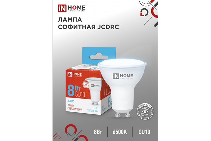 Лампа светодиодная IN HOME LED-JCDRC-VC 8Вт 230В GU10 6500К 720Лм 10/100 (4769)