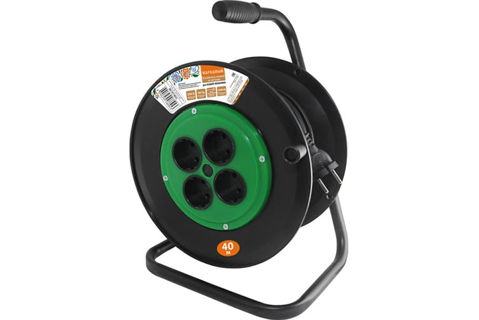 Удлинитель на катушке силовой TDM УС1-43131 ПВС 4 гнезда, 3500 Вт б/з, 40м Народный (1307-0534)