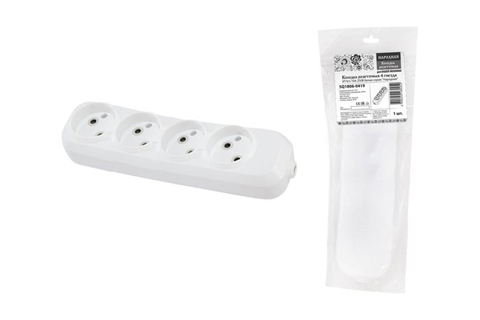 Колодка розеточная TDM 4 гнезда 2П б/з 10А 250В белая серии "Народная" К4-2000 (1806-0419)