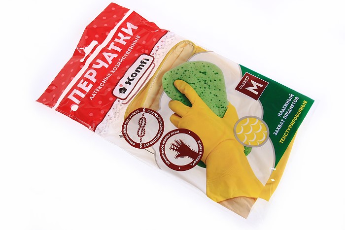 Перчатки хозяйственные латексные Komfi желтые M/240/12 DGL017P (402)