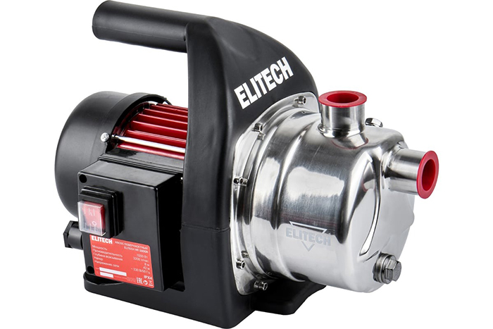 Насос поверхностный ELITECH НП 1000Н (Нержавеющая сталь,1000Вт,Напор-42м,Глубина-8м, 4,4бар, 53л/м)
