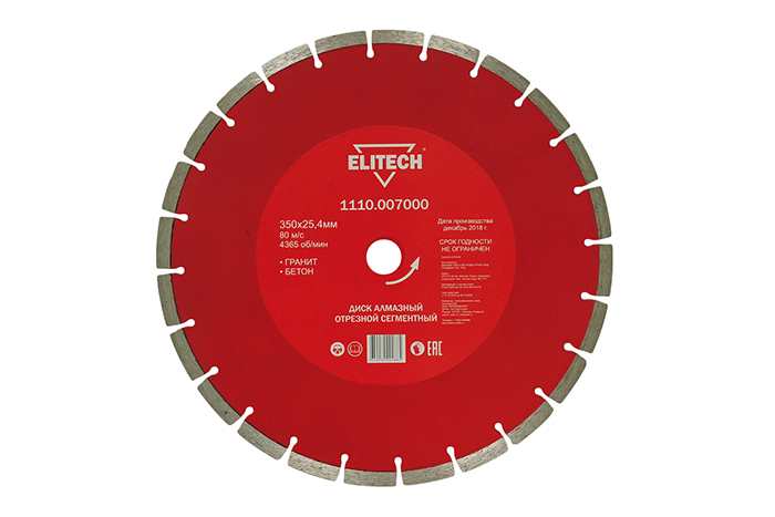Диск алмазный сегментный ELITECH ф350х25.4мм, д\гранита, бетона 1110.007000
