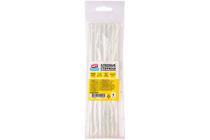 Клеевые стержни ArtSpace, диаметр 7мм, длина 200мм, прозрачные, набор 8шт., 267908