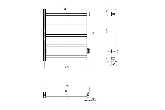 Полотенцесушитель электрический MIXLINE FAVORITE 60х50 (таймер, 302Вт, 5перекл.) МАТОВЫЙ ХРОМ 557208