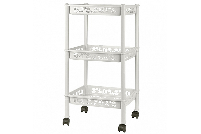 Этажерка на колесиках пластиковая трехсекционная прямоугольная - это эффективное решение для организации хранения в небольших помещениях, на кухне, в ванной, на балконе или лоджии, в кладовой или на даче. Отличительная особенность этажерки - высокие бортики, которые позволят сохранить вещи в безопасности. Напольная этажерка состоит из трех полок. Она собирается без инструментов за несколько минут, достаточно соединить стойки и полки, вставить ножки и заглушки. На нижних ножках предусмотрены колесики, ее легко выдвигать и устанавливать на место.