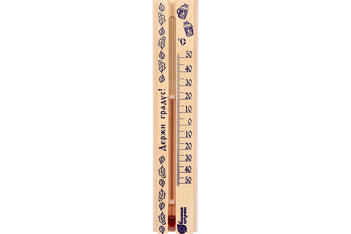 - Термометр в предбанник Банные штучки Держи градус 21x4x1.5см 18057 поможет контролировать температурный режим в помещении. Прекрасно вписывается в интерьер бани. Не содержит ртути и спирта.