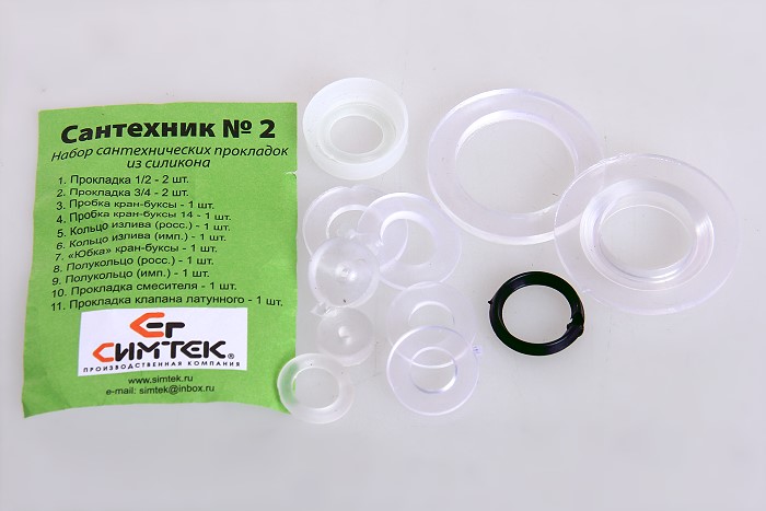 - Набор прокладок для смесителя Сантехник № 2 силикон предназначен для герметизации смесителя. Прокладки изготовлены из силикона, благодаря чему отличаются универсальностью, более выраженной эластичностью, отсутствием специфического запаха и серы в составе. Одним из главных преимуществ прокладок из силикона является возможность использования в трубопроводах с температурой до 280°C. Набор состоит из прокладок различного применения. Размеры прокладок Кольцо для имп. излива 14х19 (силикон)