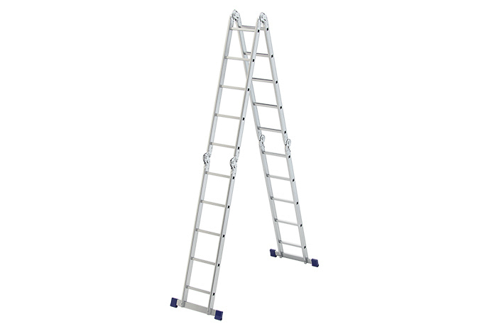 - Шарнирная алюминиевая лестница Сибртех — универсальная четырехсекционная конструкция для работы на высоте.