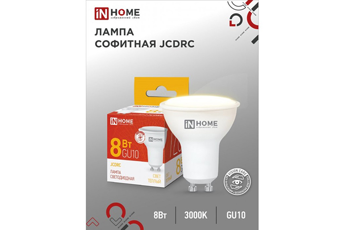 Лампа светодиодная IN HOME LED-JCDRC-VC 8Вт 230В GU10 3000К 720Лм 10/100 (3427)