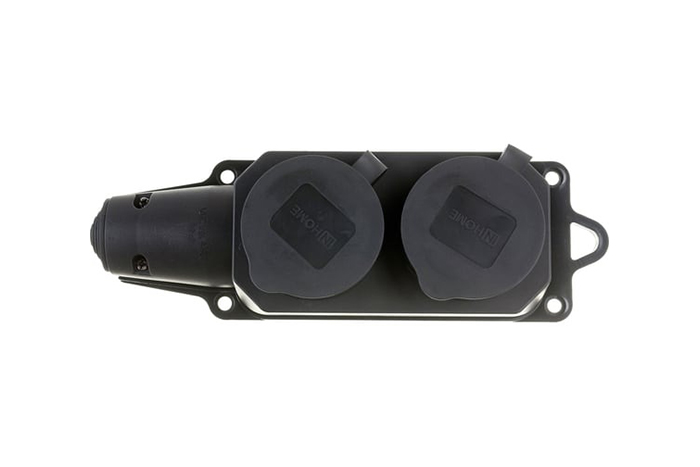 Розетка IN HOME 2-х местная с/с каучук, с заглушками 16А IP44 черная 9322 (274)