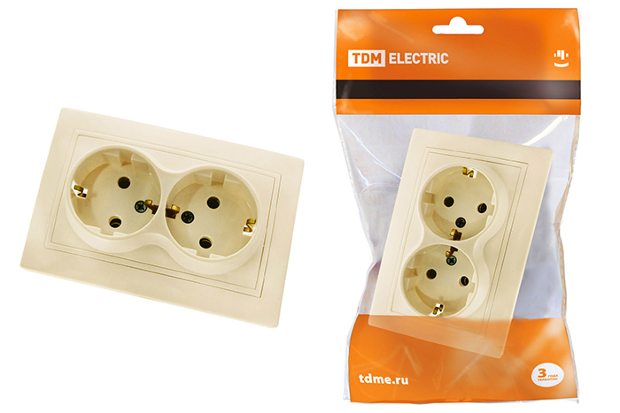 Розетка TDM "Таймыр" двойная 2П+З 16А 250В сл. кость (1814-0114)