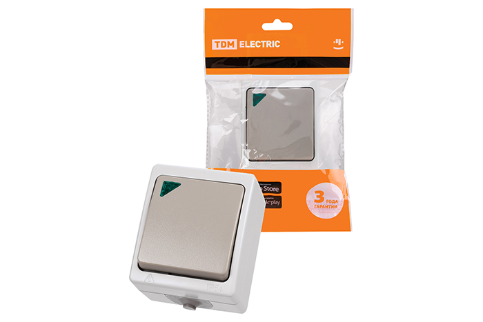 Выключатель TDM "Вуокса" 1-кл. открытой установки с подсветкой IP54 10А серый (1803-0004)
