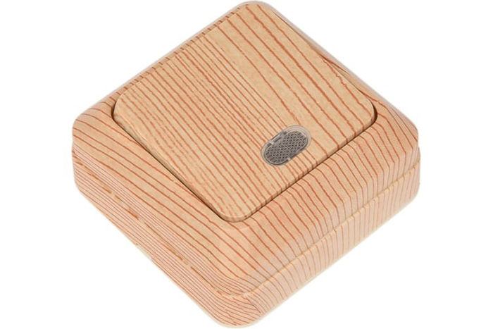 Выключатель TDM "Ладога" 1-кл. открытой установки с подсветкой IP20 10А, сосна (1801-0047)