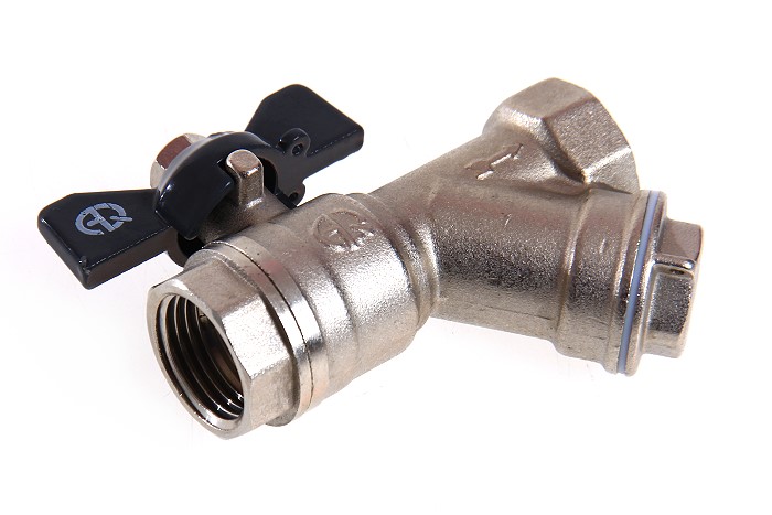 Кран шаровой с косым фильтром AQUALINK ДУ15 (1/2) Г/Г бабочка (1161) (10/1)