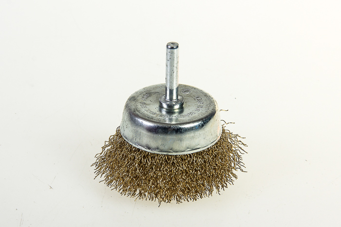 Щетка для дрели MATRIX, 65 мм, "чашка" со шпилькой, латунированная витая проволока (74477)