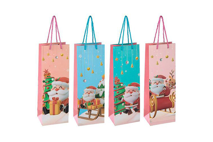 - Пакет подарочный для бутылки — стильный и удобный пакет размером 36х12х9 см, специально предназначенный для упаковки бутылок. В ассортименте 4 дизайна, идеально подходит для подарков и праздничных сюрпризов.