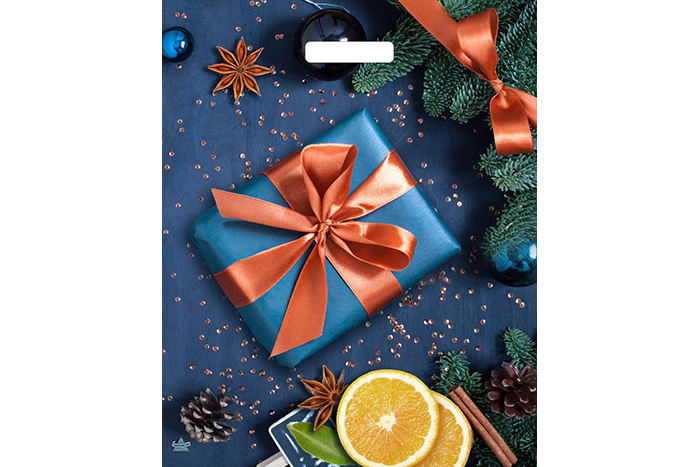 Пакет п/эт выруб.ручка ТикоПластик ПОДАРОК С АПЕЛЬСИНАМ глянц. 475х390х0,06 (056) (1/50)