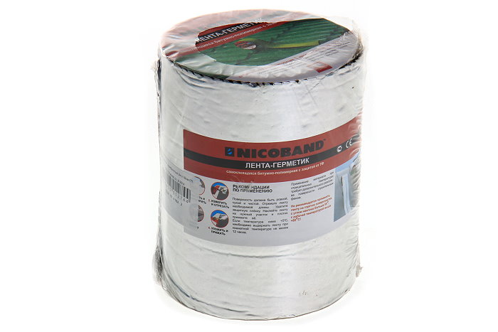- Самоклеящаяся двусторонняя лента Nicoband изготавливается из битумного вяжущего, нанесенного на одну сторону специальной фольгированной основы, стойкой к УФ-воздействию. Клейкая сторона ленты защищена антиадгезионной пленкой, чтобы предотвратить склеивание.