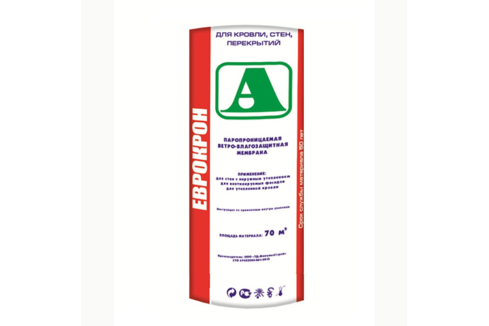 Еврокрон А используется для защиты утеплителя и конструкции здания в стенах и вентилируемых фасадах, укладывается с внешней стороны утеплителя под наружной облицовкой стены.