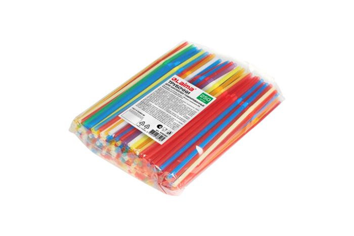 Трубочки для коктейлей гофрированные, пластиковые 5х210 мм, черные КОМПЛЕКТ 250 штук, ЛАЙМА (608358)