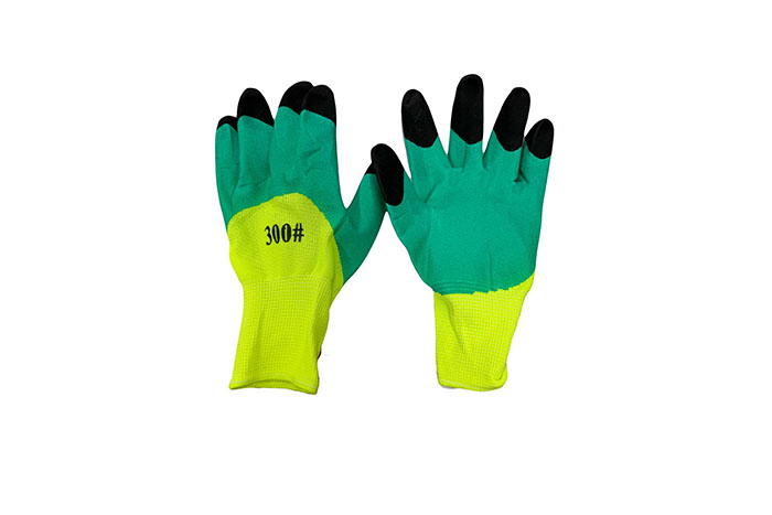 Перчатки нейлоновые салатовые, облив Чёрные пальцы, усиленные,серия Люкс 3/4, В12/12/720