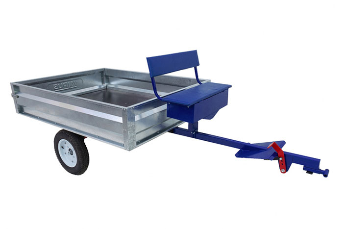 Основание кузова представляет собой сварную конструкцию из труб, борта-оцинкованные, дно-ламинированная фанера. Рама представляет собой сварную конструкцию из труб прямоугольного сечения и состоит из двух частей, соединенных между собой. В передней части рамы устанавливается сцепка для соединения с мотоблоком через шкворень.