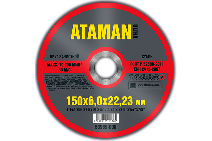 Круг зачистной ATAMAN 150х6,0х22мм (МЕТАЛЛ) 1 14A 10/20