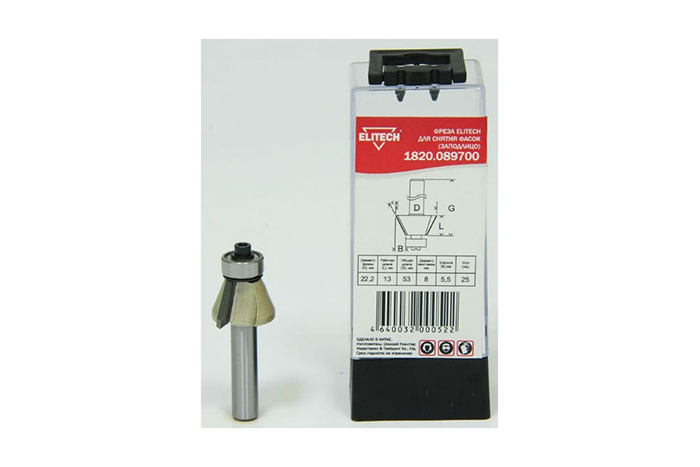 Фреза ELITECH для снятия фасок, хв-8мм, ф22.2мм, ширина5.5мм, длина13мм, угол25гр 1820.089700
